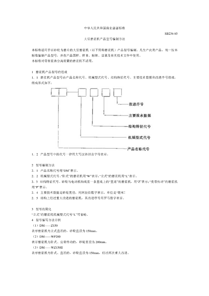 SB 234-1985 大豆磨浆机产品型号编制方法