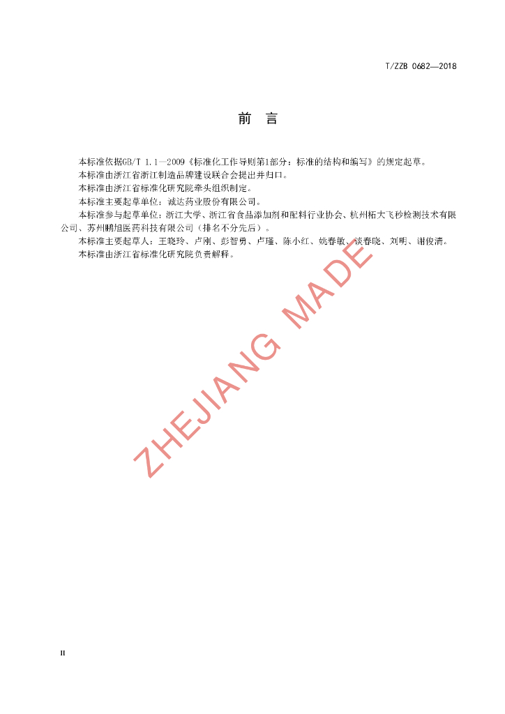 诚达药业股份有限公司、浙江大学、浙江省食品添加剂和配料行业协会、杭州柘大飞秒检测技术有限公司、苏州鹏旭医药科技有限公司