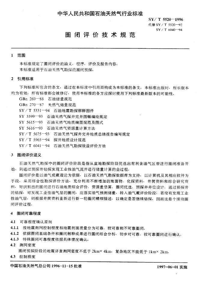 SY/T 5520-1992 圈闭评价技术规范