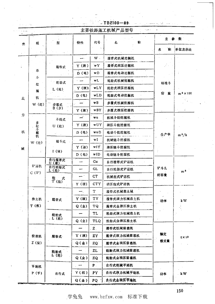 TB 2100-1989 铁路施工机械产品型号编制方法
