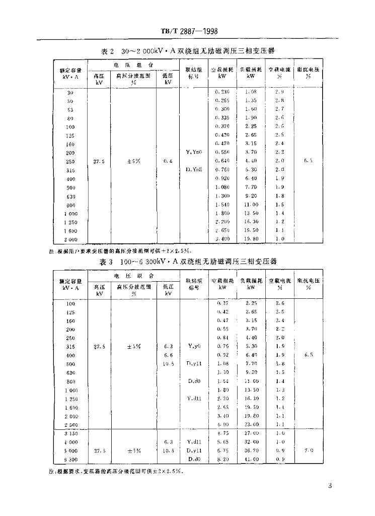 TB/T 2887-1998 铁道专用27.5kV级油浸式电力变压器技术参数和要求