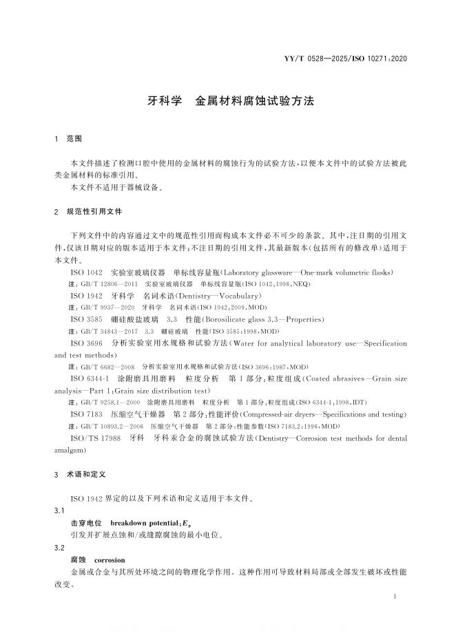 YY/T 0528-2025 牙科学 金属材料腐蚀试验方法