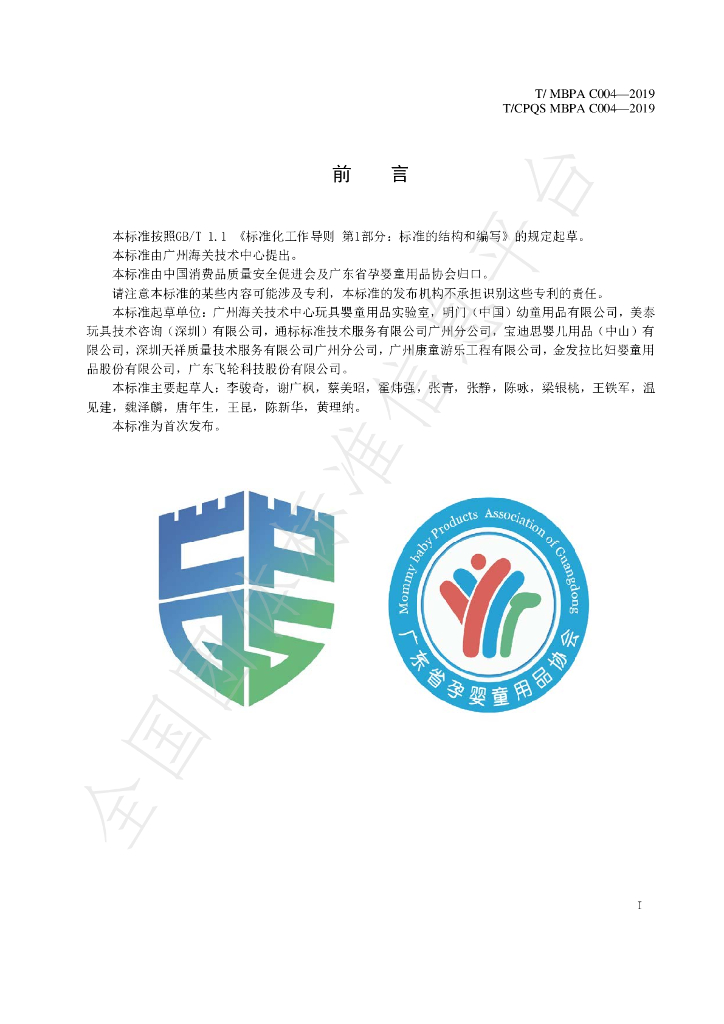 广州海关技术中心、明门(中国)幼童用品有限公司、美泰玩具技术咨询(深圳)有限公司、通标标准技术服务有限公司广州分公司、宝迪思婴儿用品(中山)有限公司、深圳天祥质量技术服务有限公司广州分公司、广州康童游乐工程有限公司、金发拉比妇婴童用品股份有限公司、广东飞轮科技股份有限公司