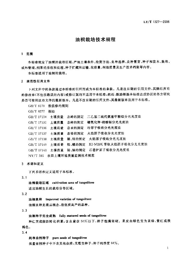 LY/T 1327-2006 油桐栽培技术规程