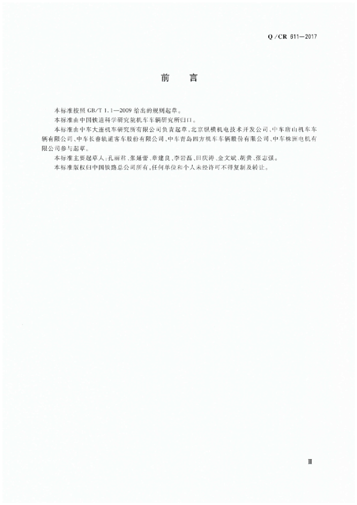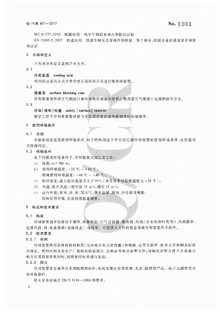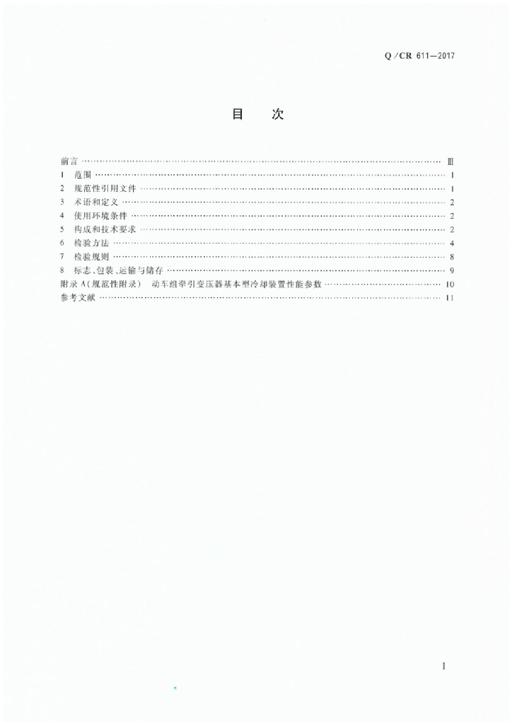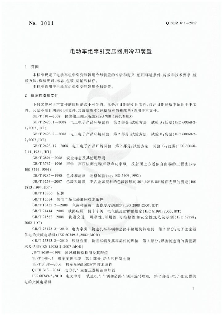 Q/CR 611-2017 电动车组牵引变压器用冷却装置