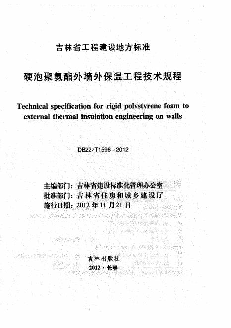 DB22/T 1596-2012 硬泡聚氨酯外墙外保温工程技术规程(已废止)