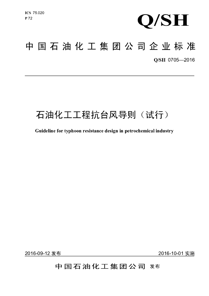 Q/SH 0705-2016 石油化工工程抗台风导则