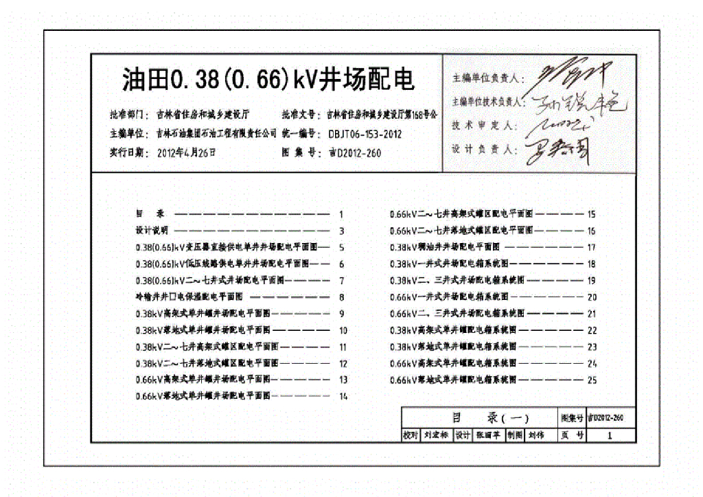 吉D2012-260 油田0.38(0.66)kV井场配电图集