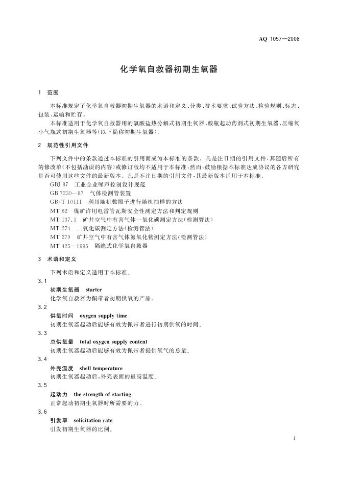 AQ 1057-2008 化学氧自救器初期生氧器