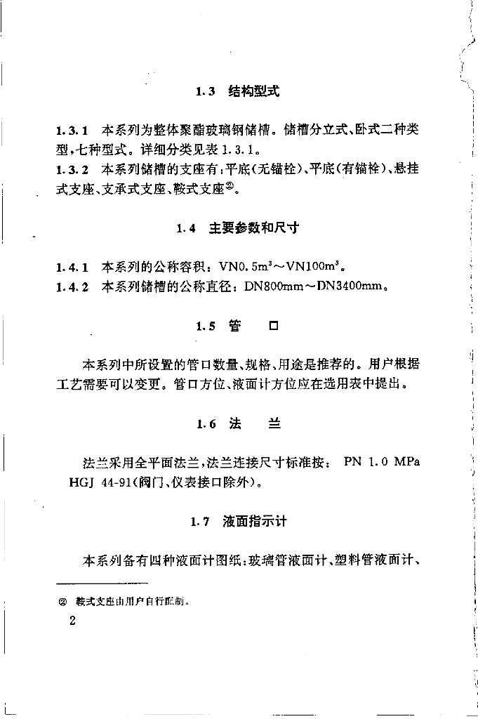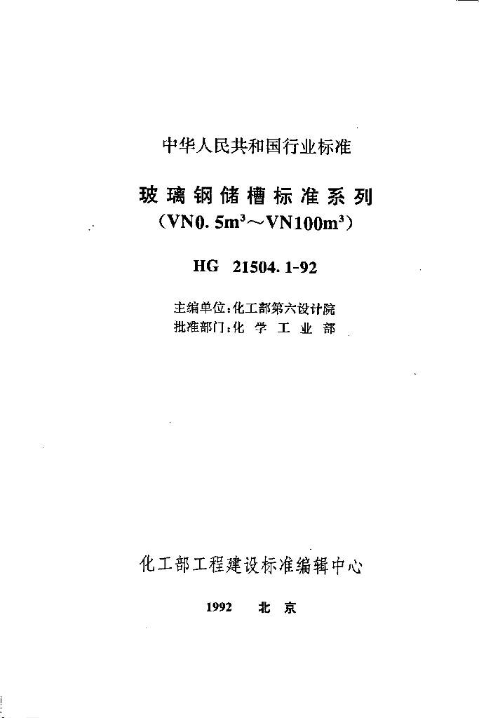 HG/T 21504.1-1992 玻璃钢储槽标准系列(VN0.5m3-VN100m3)