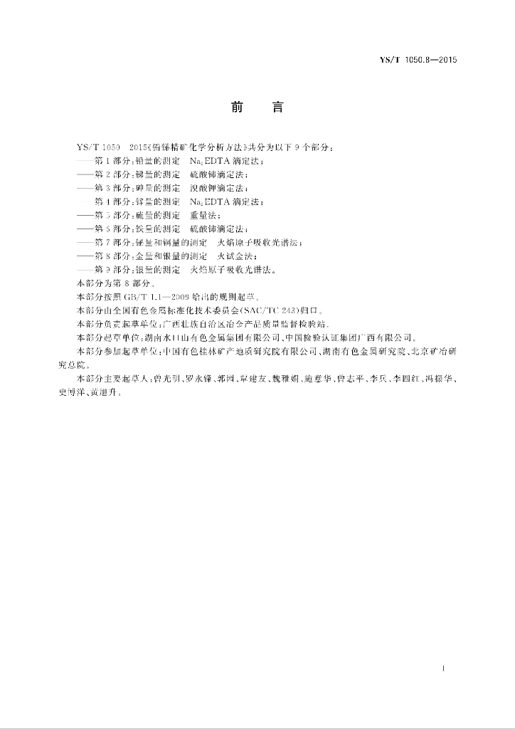 YS/T 1050.8-2015 铅锑精矿化学分析方法 第8部分:金量和银量的测定 火试金法