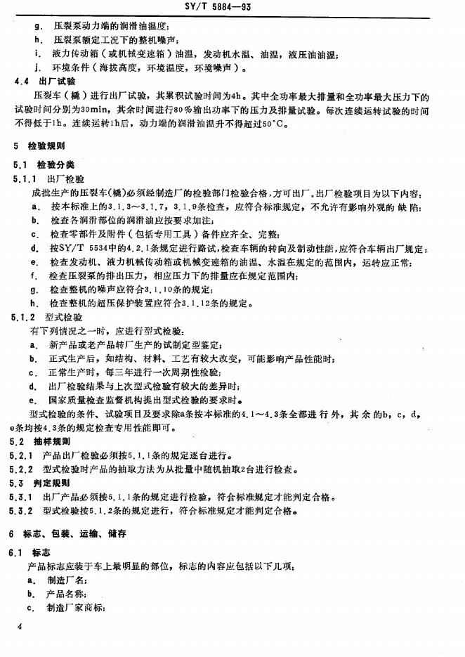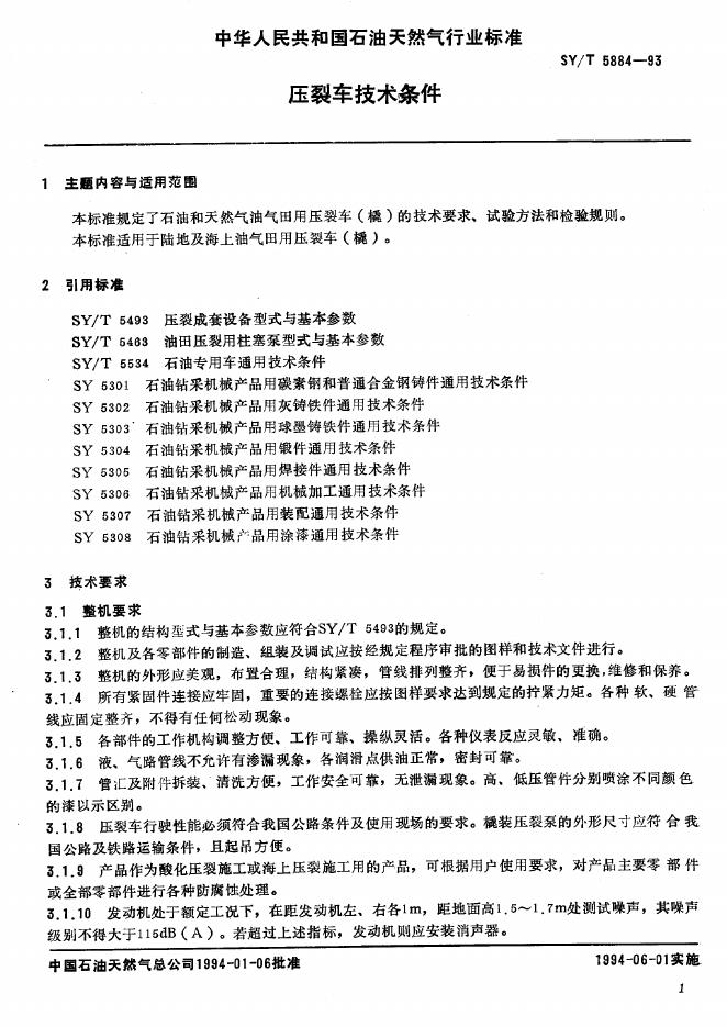 SY/T 5884-1993 压裂车技术条件