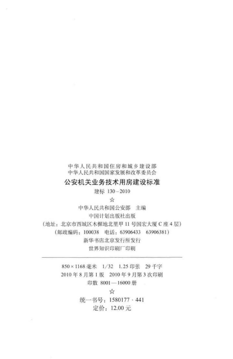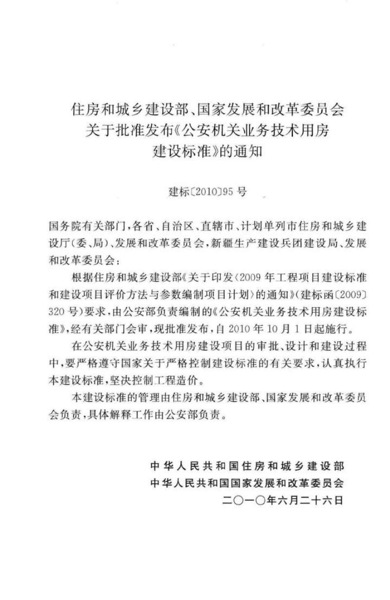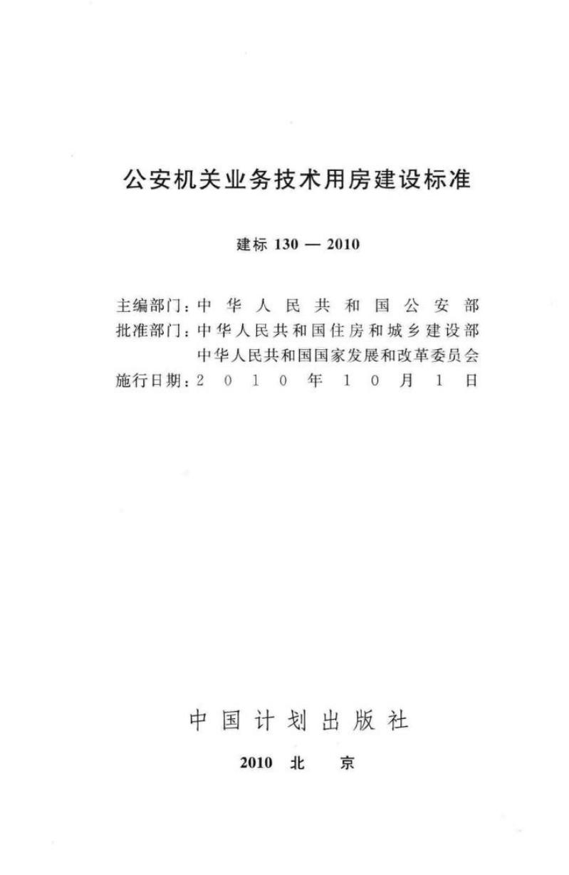 建标 130-2010 公安机关业务技术用房建设标准