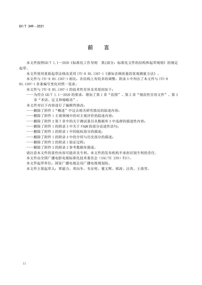 GY/T 349-2021 感知音频质量的客观测量方法