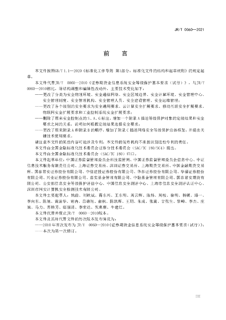 JR/T 0060-2021 证券期货业网络安全等级保护基本要求