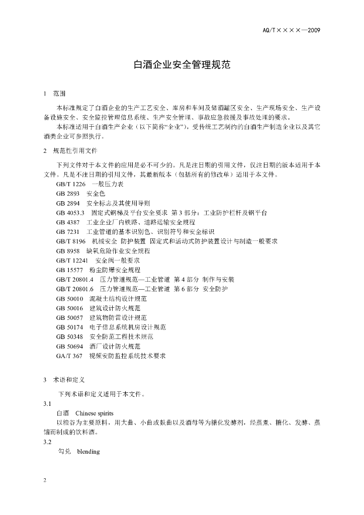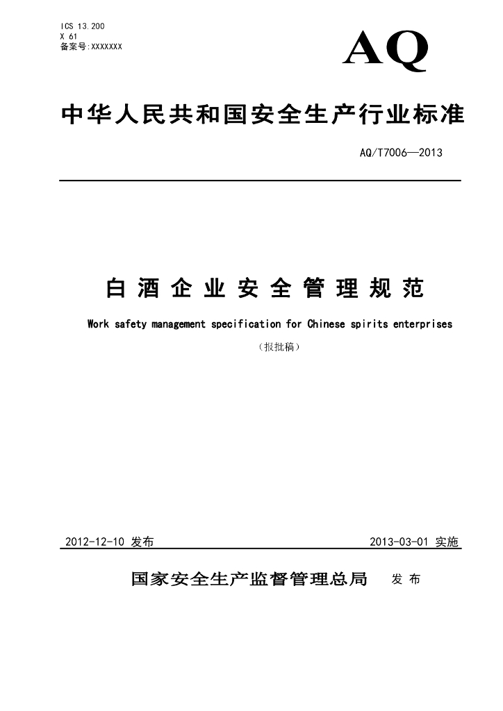 AQ/T 7006-2013 白酒企业安全管理规范