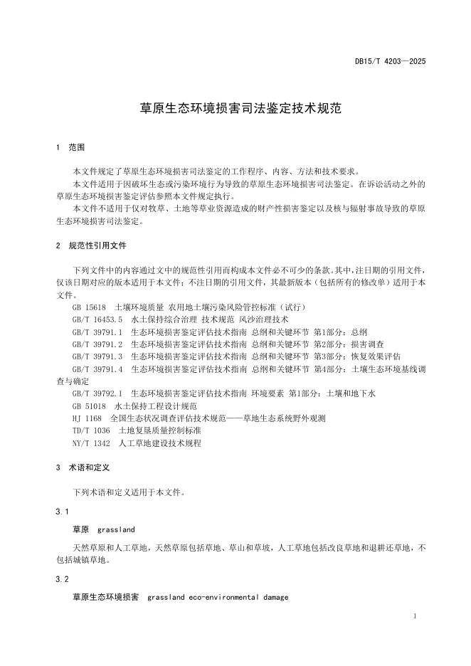 DB15/T 4203-2025 草原生态环境损害司法鉴定技术规范