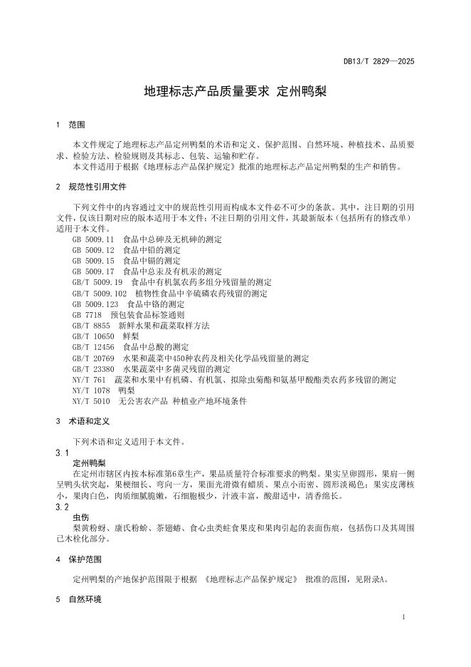 DB13/T 2829-2025 地理标志产品质量要求 定州鸭梨