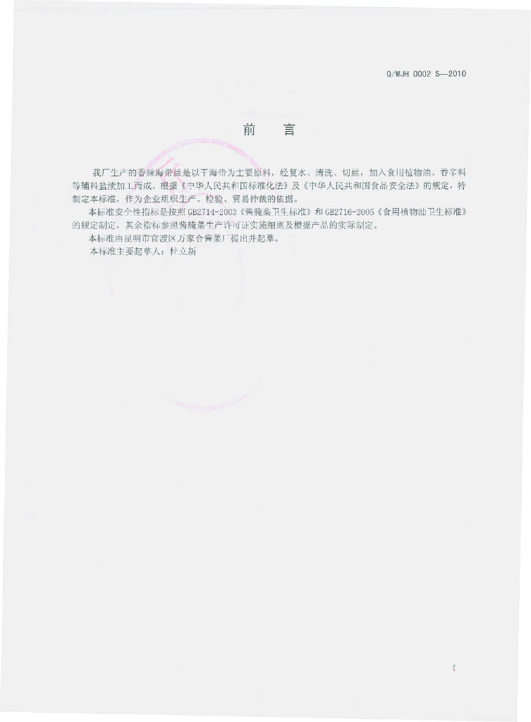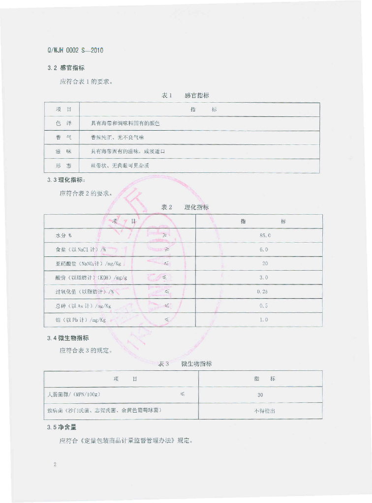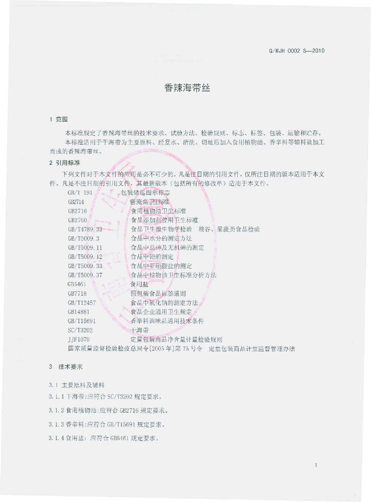 Q/WJH 0002S-2010 香辣海带丝