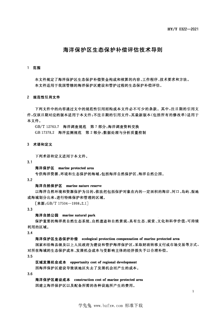 HY/T 0322-2021 海洋保护区生态保护补偿评估技术导则