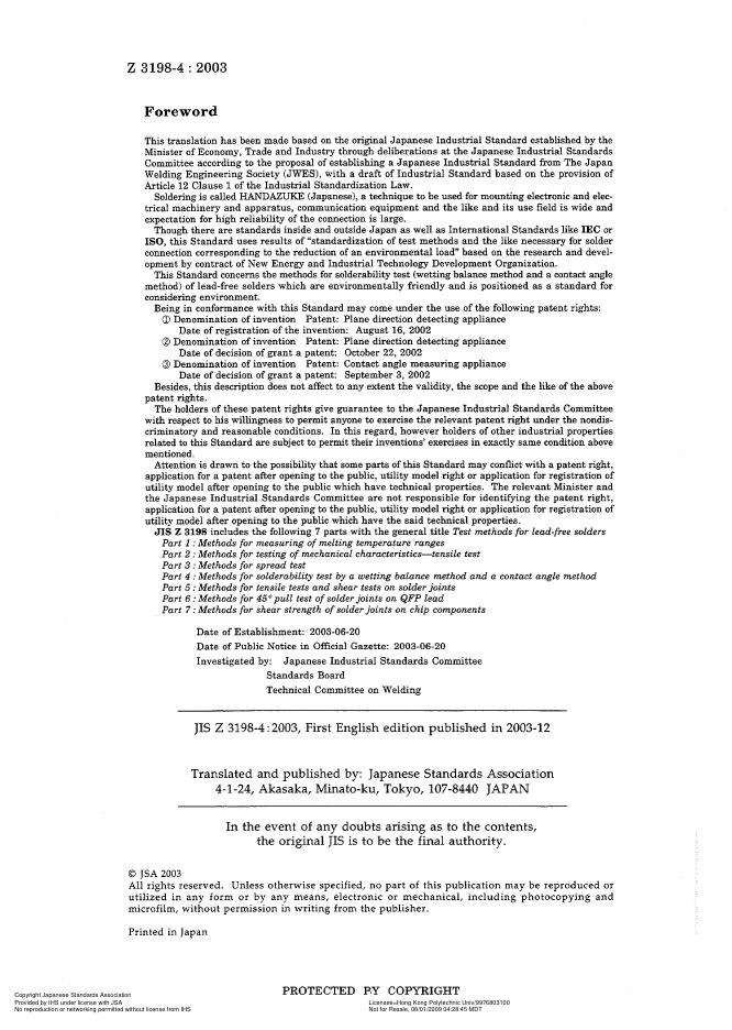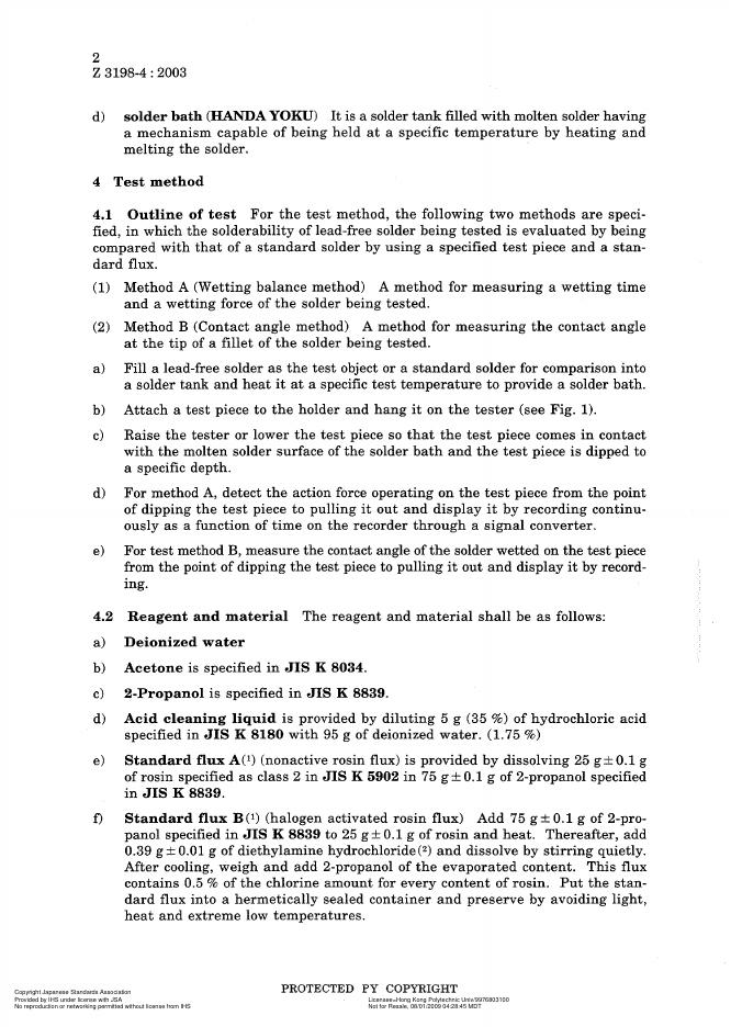 JIS Z3198-4-2003 无铅焊剂的试验方法 第4部分:用湿平衡法和接