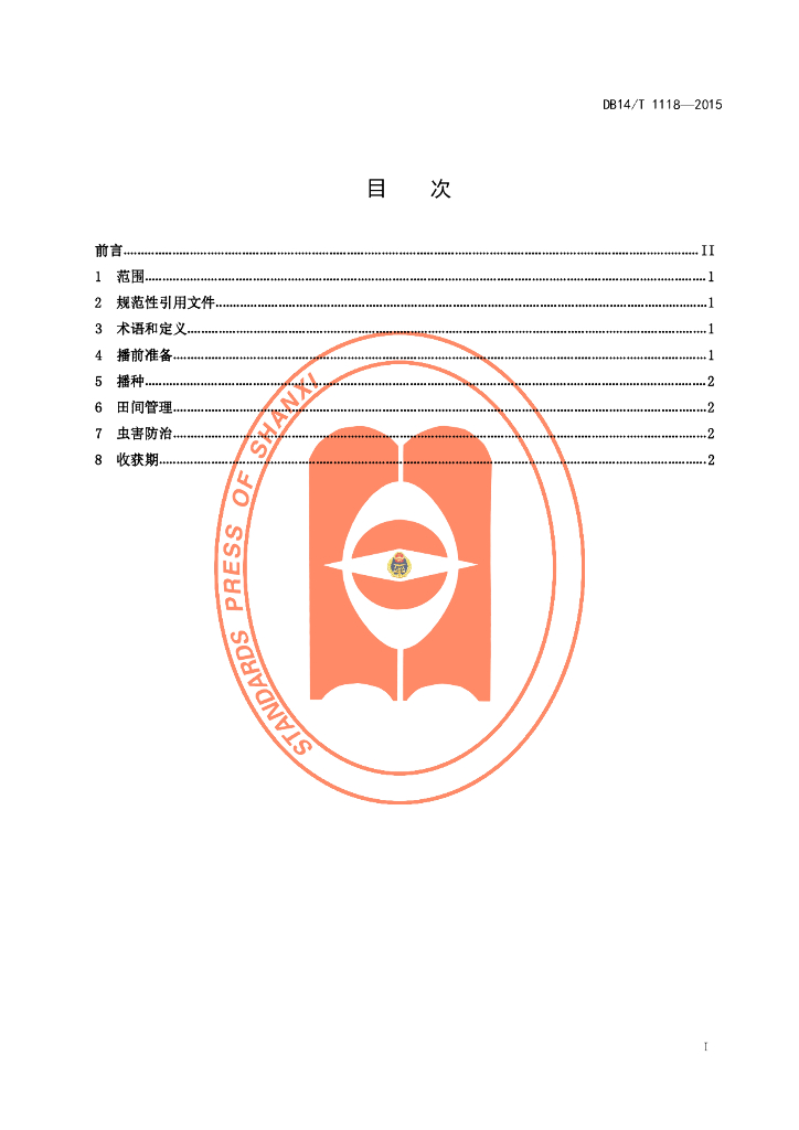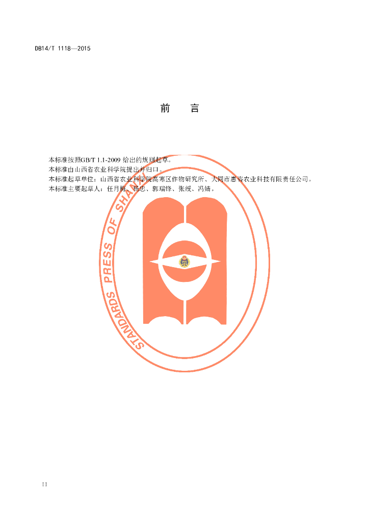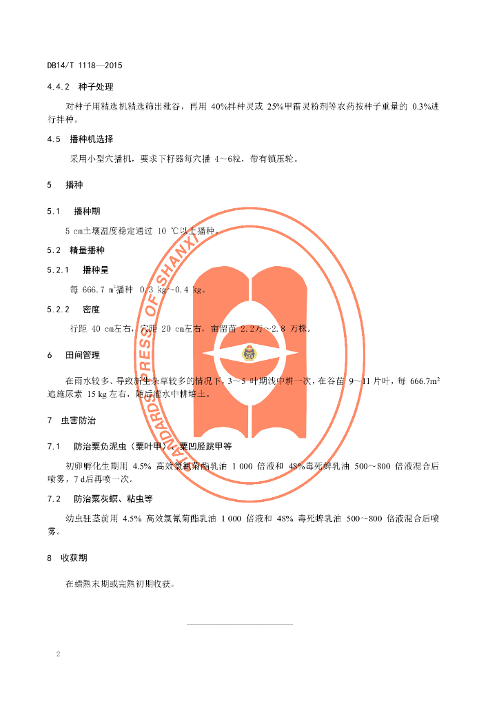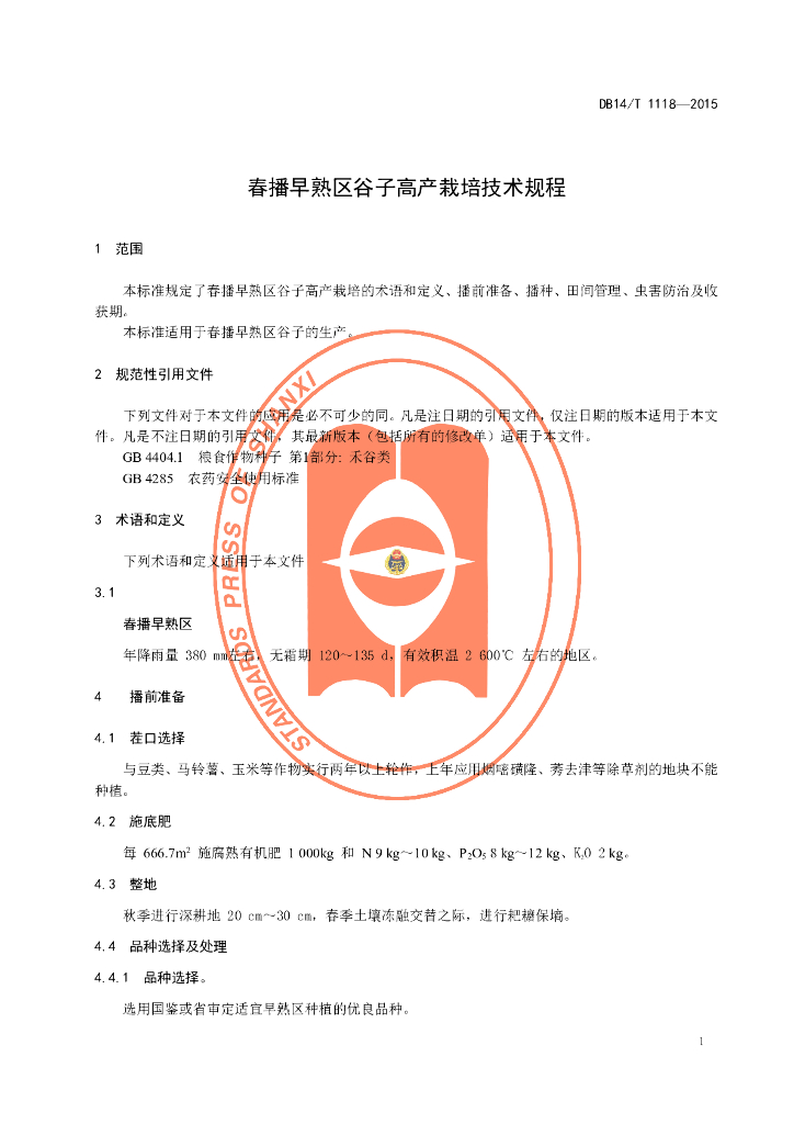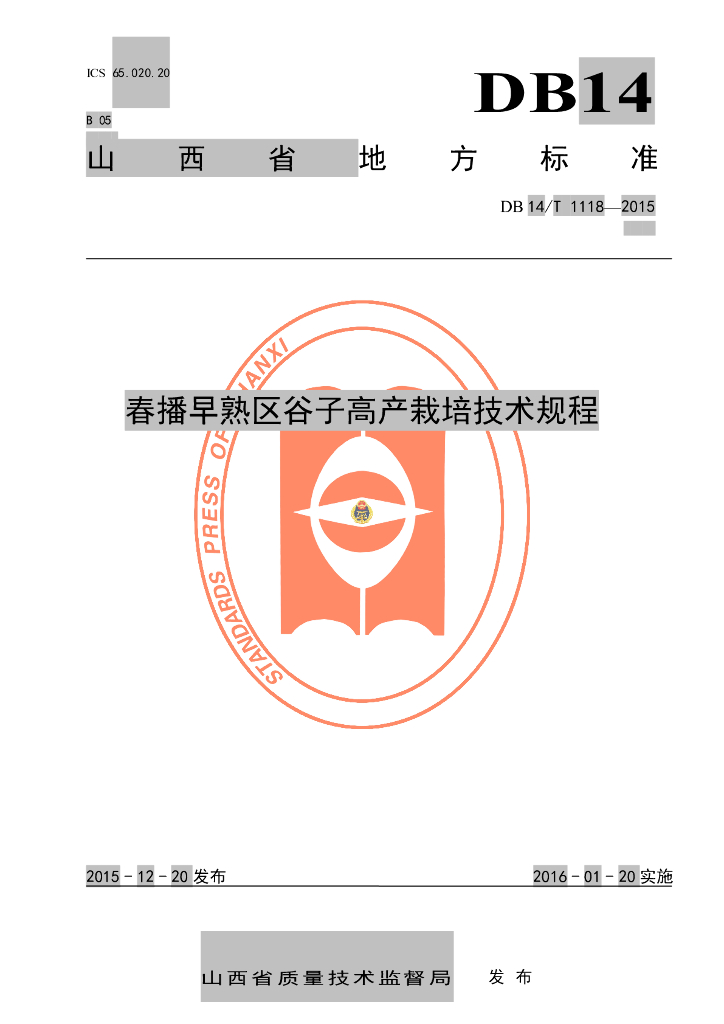 DB14/T 1118-2015 春播早熟区谷子高产栽培技术规程