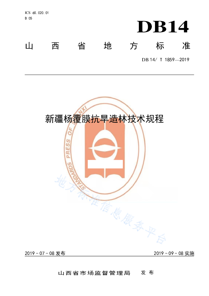 DB14/T 1859-2019 新疆杨覆膜抗旱造林技术规程
