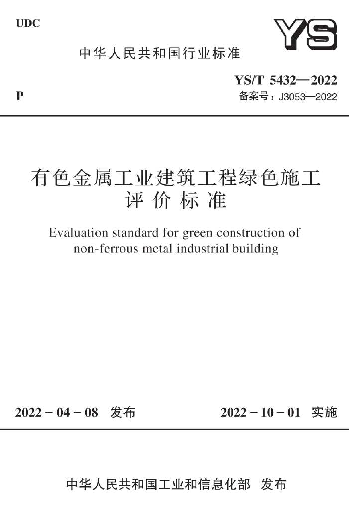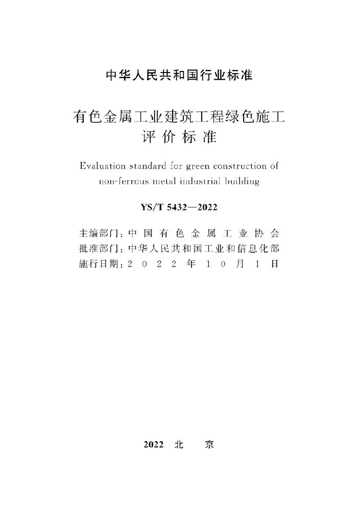 YS/T 5432-2022 有色金属工业建筑工程绿色施工评价标准