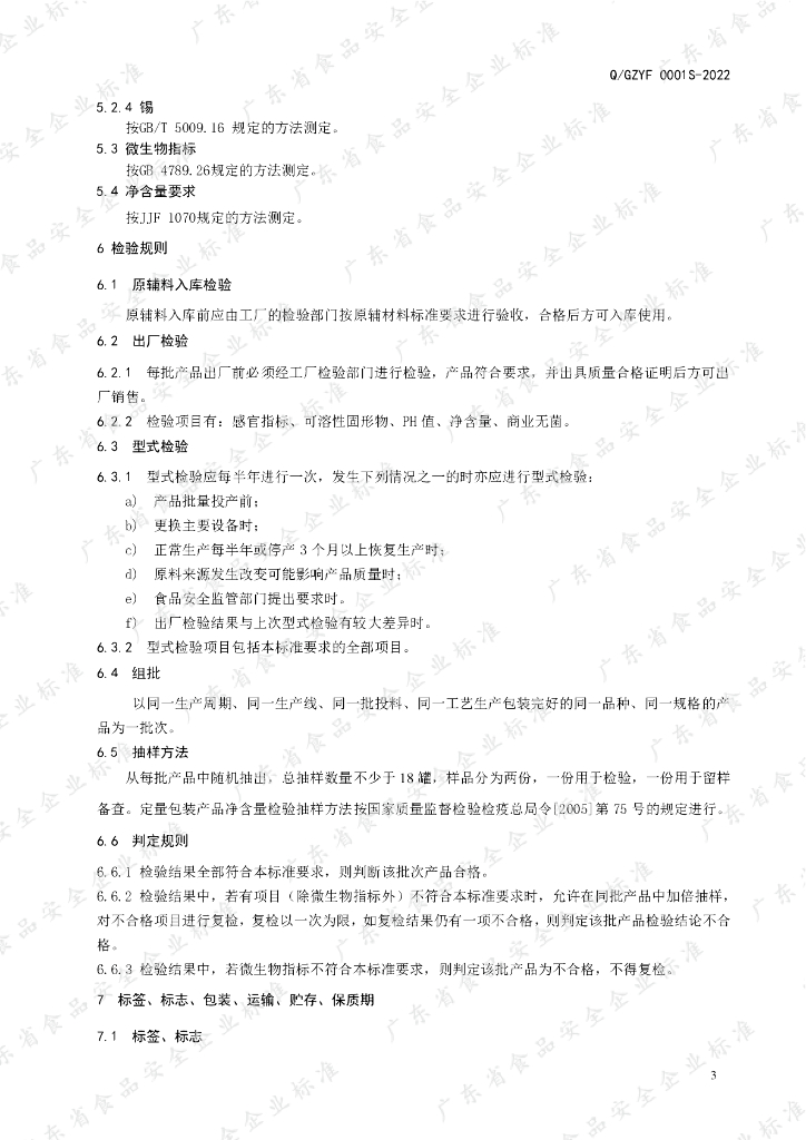 Q/GZYF 0001S-2022 凉茶植物饮料