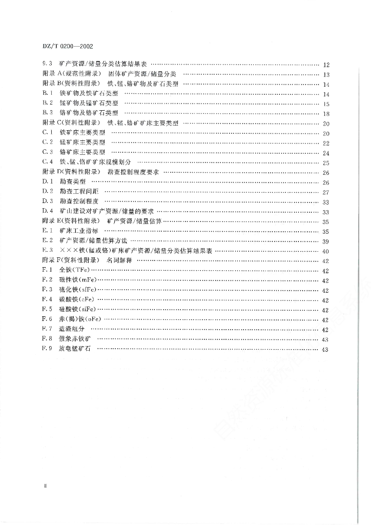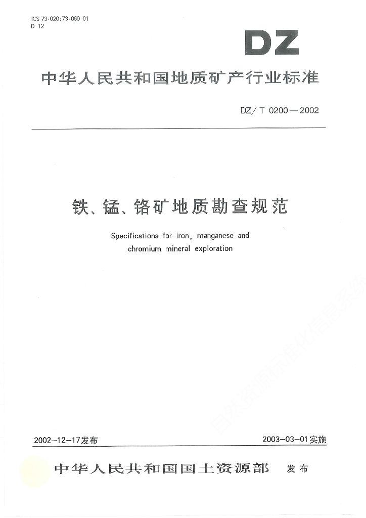 DZ/T 0200-2002 铁、锰、铬矿地质勘查规范
