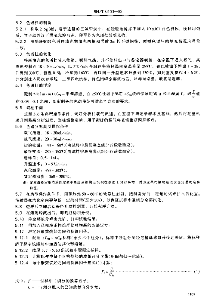 SH/T 0400-1992 石蜡碳数分布气相色谱测定法