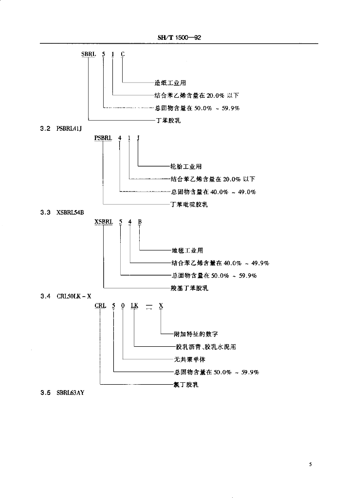 SH/T 1500-1992 合成胶乳 命名及牌号规定
