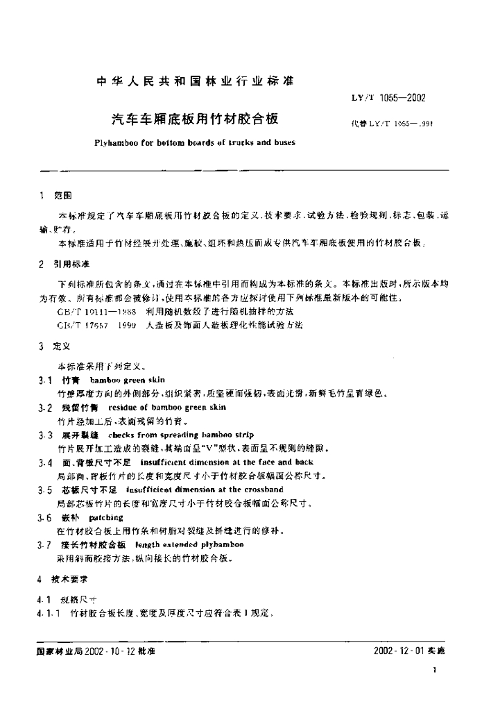 LY/T 1055-2002 汽车车厢底板用竹材胶合板