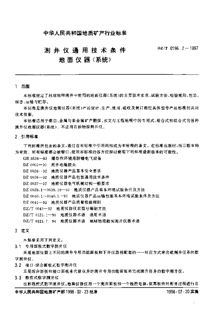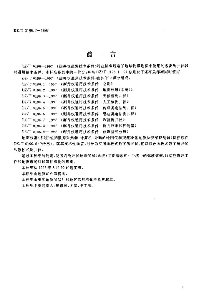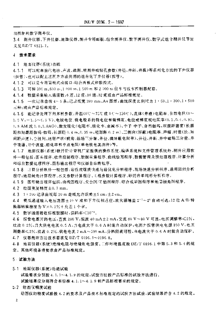 DZ/T 0196.2-1997 测井仪通用技术条件地面仪器(系统)