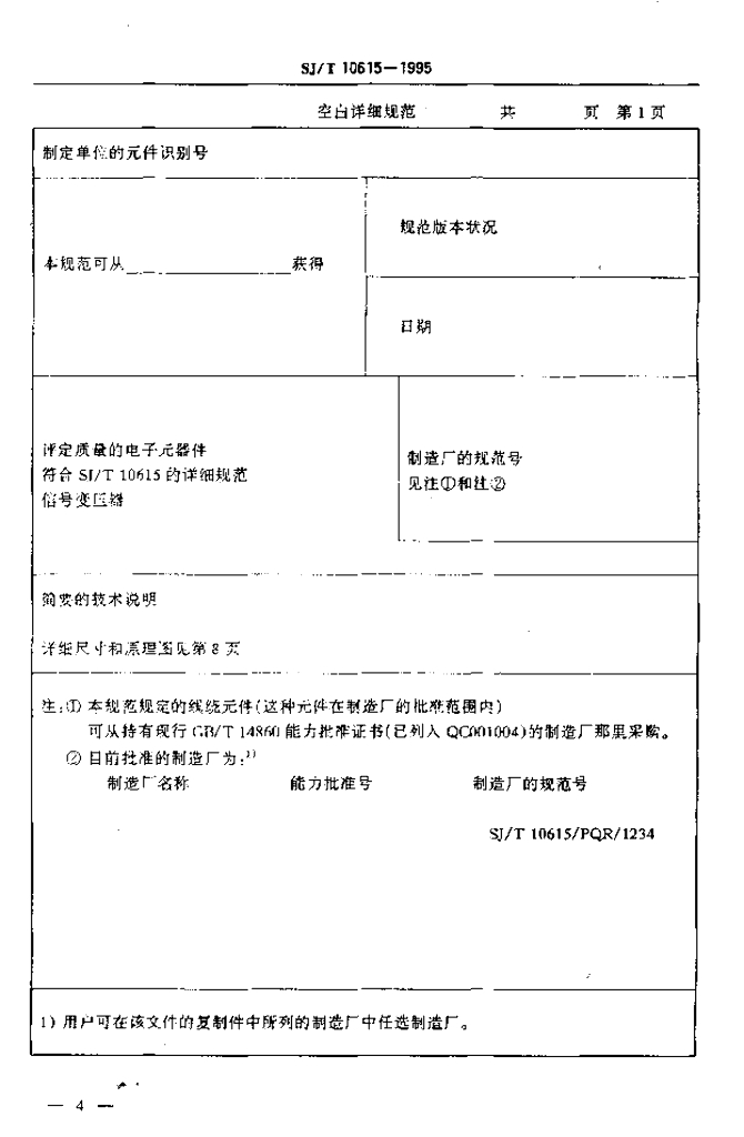SJ/T 10615-1995 按能力批准程序评定质量的电子设备用信号变压器分规范