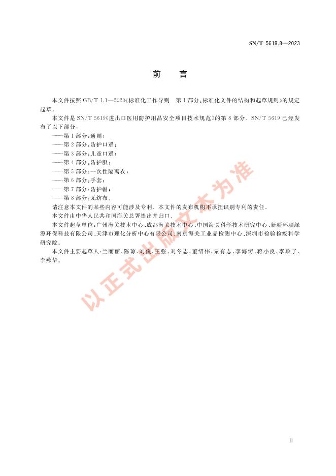 SN/T 5619.8-2023 进出口医用防护用品安全项目技术规范 第8部分:无纺布