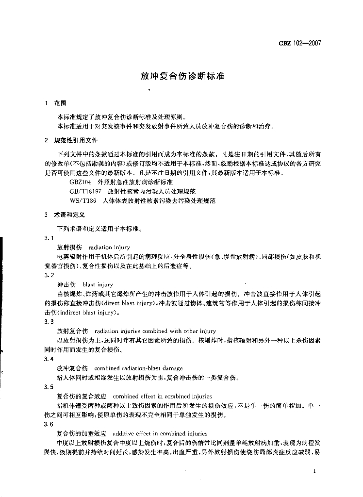 GBZ 102-2007 放冲复合伤诊断标准