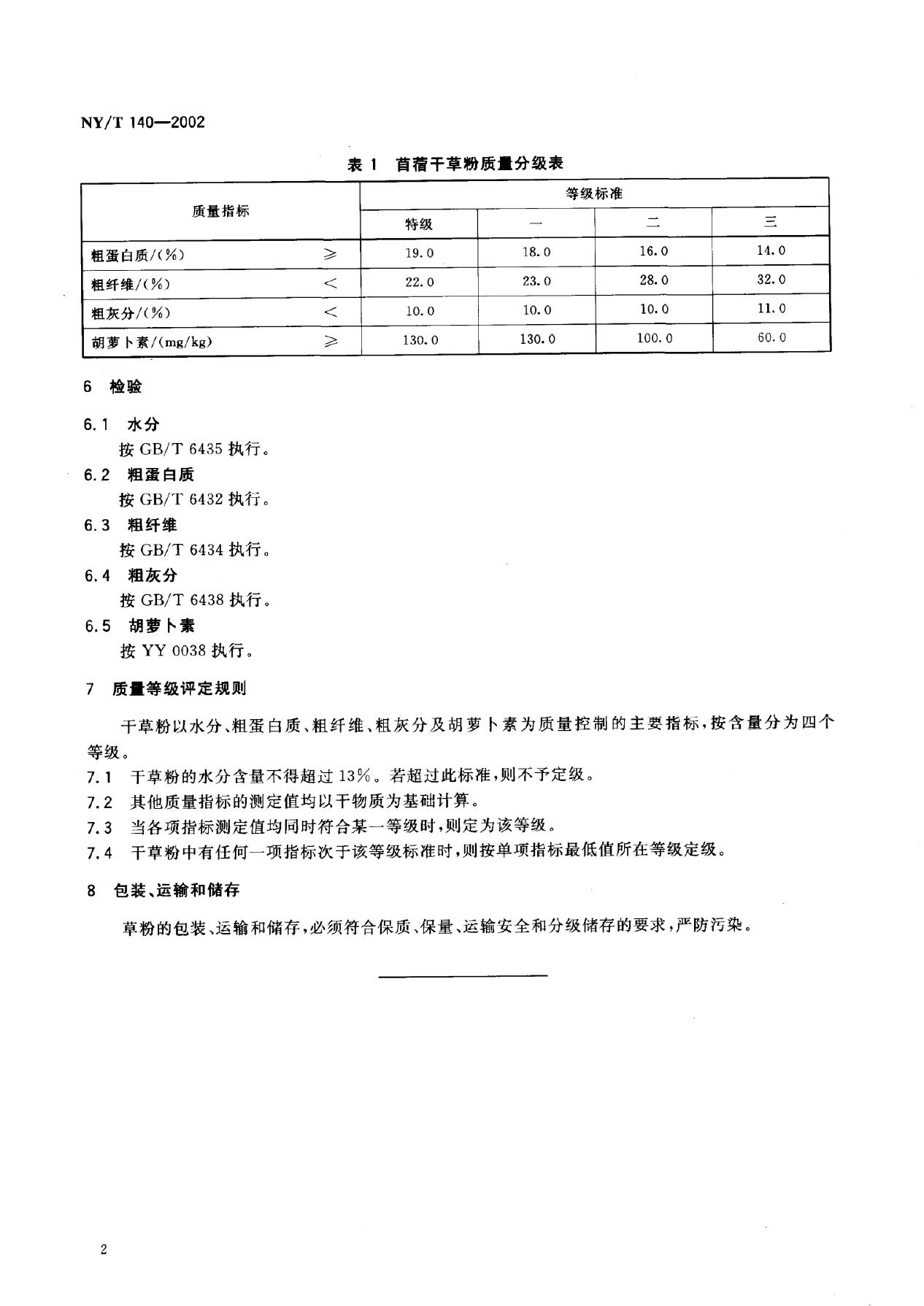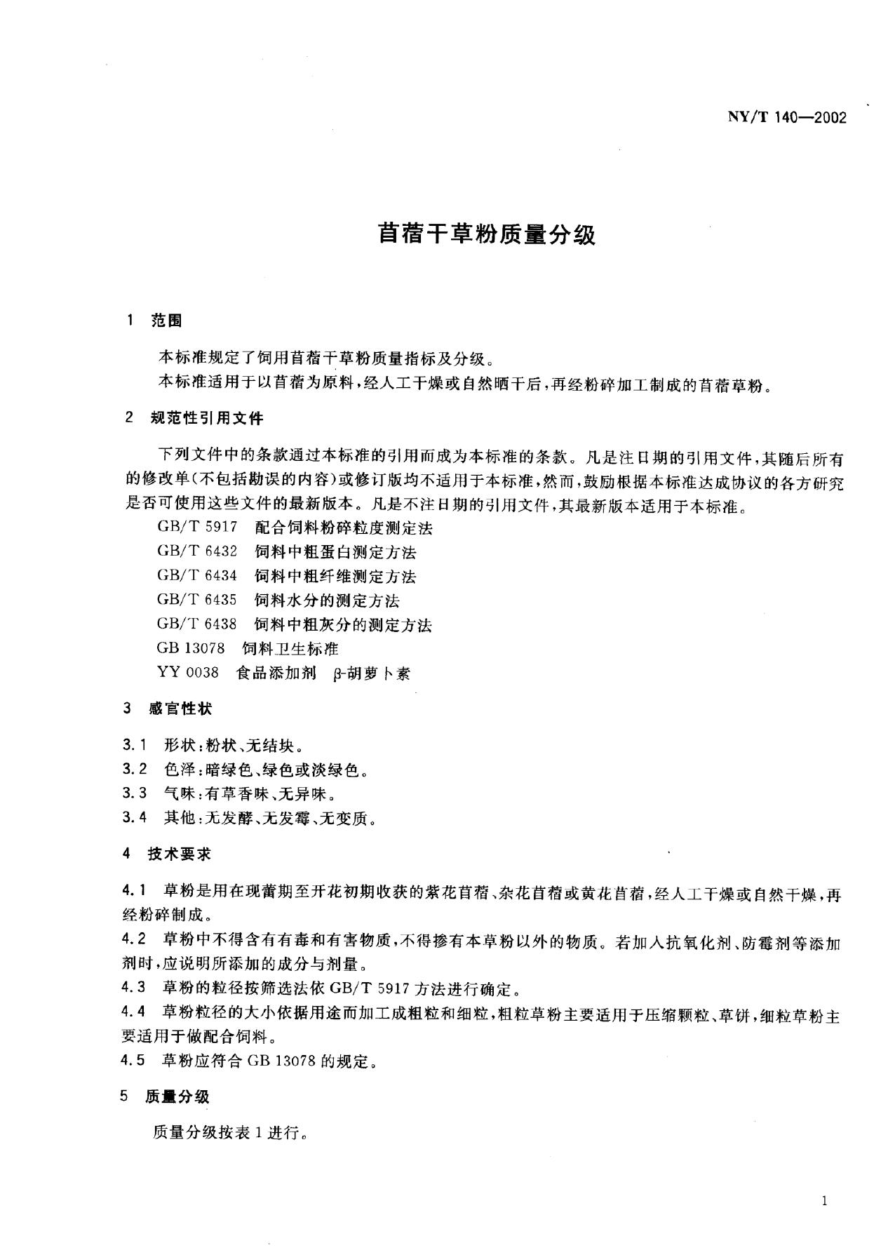 NY/T 140-2002 苜蓿干草粉质量分级