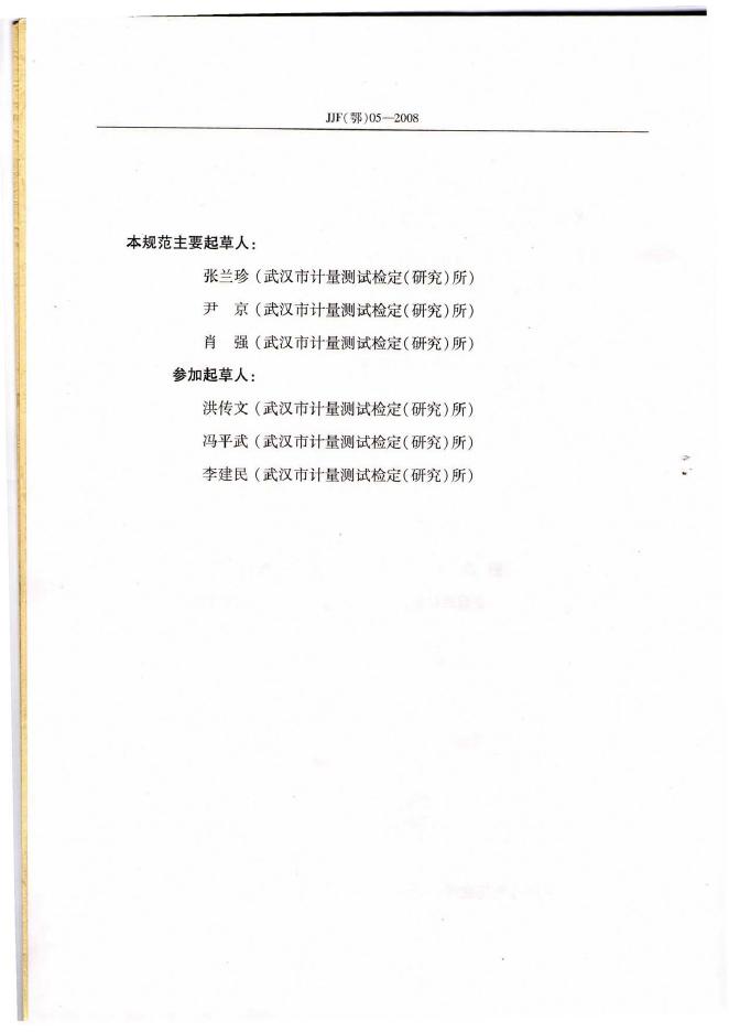 张兰珍(武汉市计量测试检定(研究)所)、尹京(武汉市计量测试检定(研究)所)、肖强(武汉市计量测试检定(研究)所)、洪传文(武汉市计量测试检定(研究)所)、冯平武(武汉市计量测试检定(研究)所)、李建民(武汉市计量测试检定(研究)所)