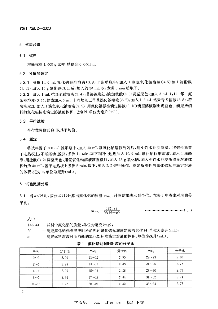 YS/T 739.2-2020 铝电解质化学分析方法 第2部分:分子比的测定 三氯化铝滴定法