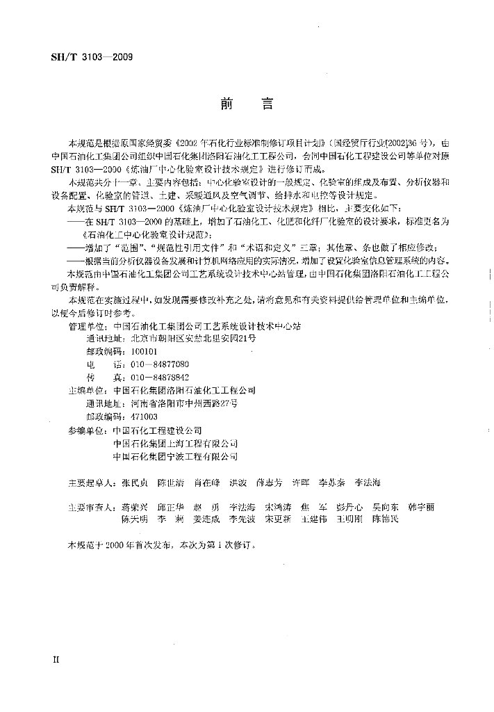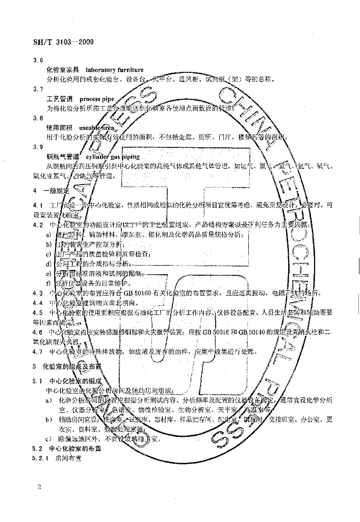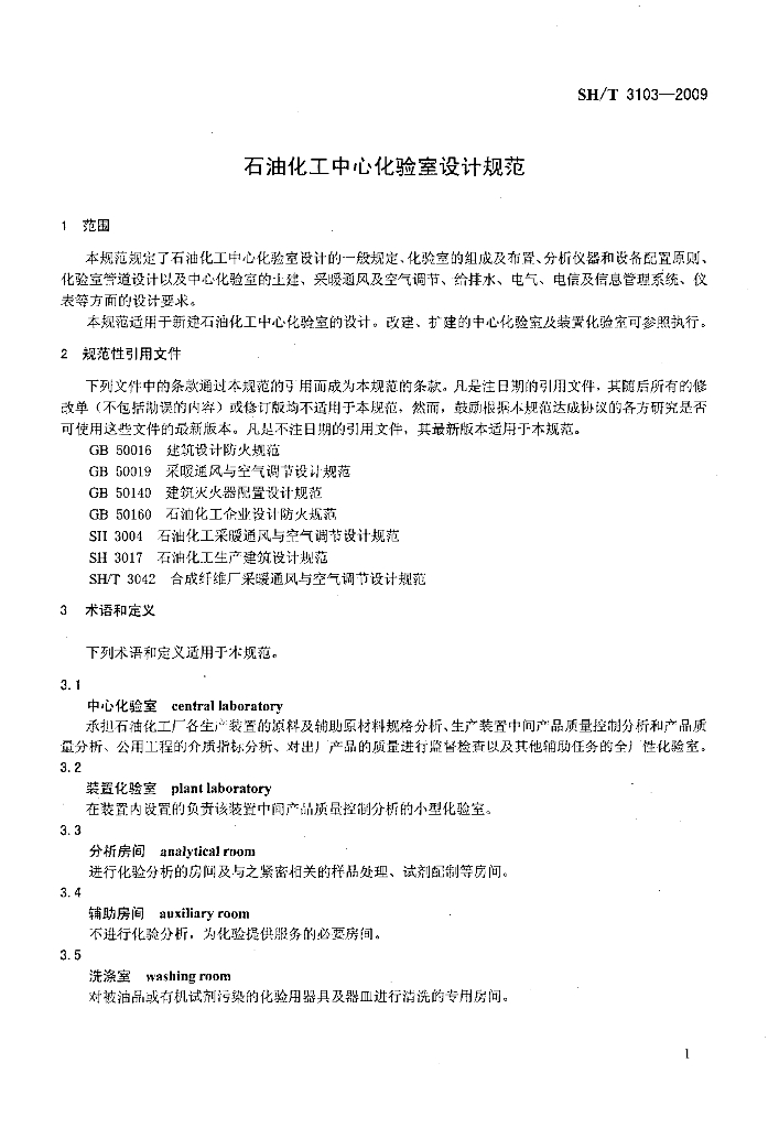 SH/T 3103-2009 石油化工中心化验室设计规范