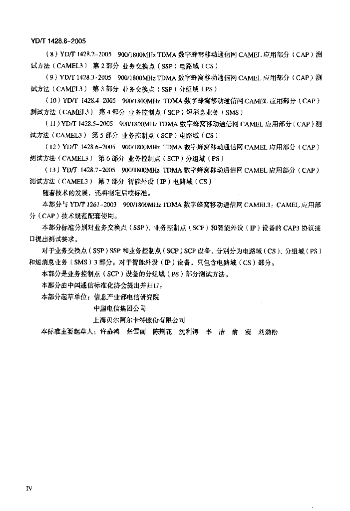 YD/T 1428.6-2005 900/1800MHz TDMA 数字蜂窝移动通信网CAMEL应用部分(CAP)测试方法(CAMEL3) 第6部分:业务控制点(SCP)分组域(PS)