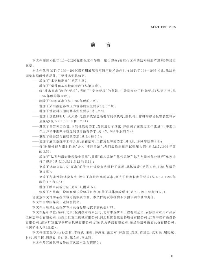 MT/T 199-2025 煤矿用液压钻车通用技术条件