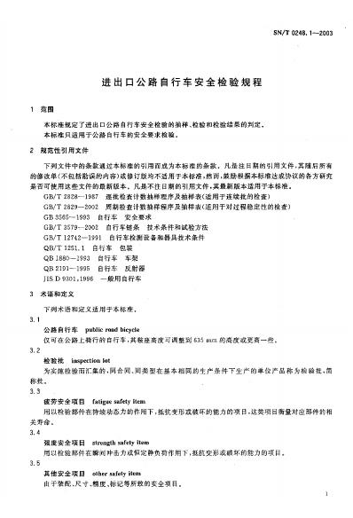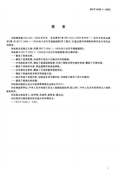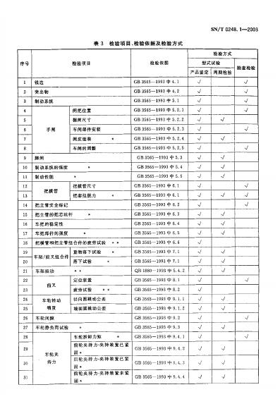 SN/T 0248.1-1993 出口自行车检验规程
