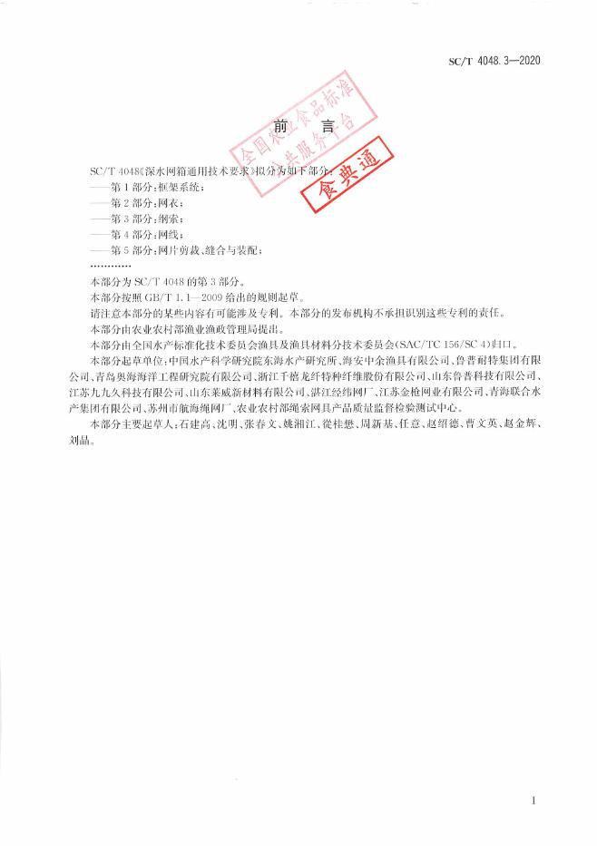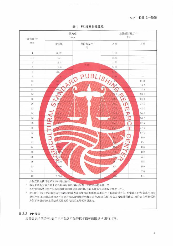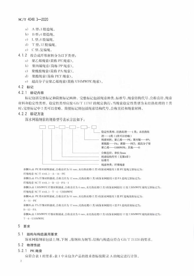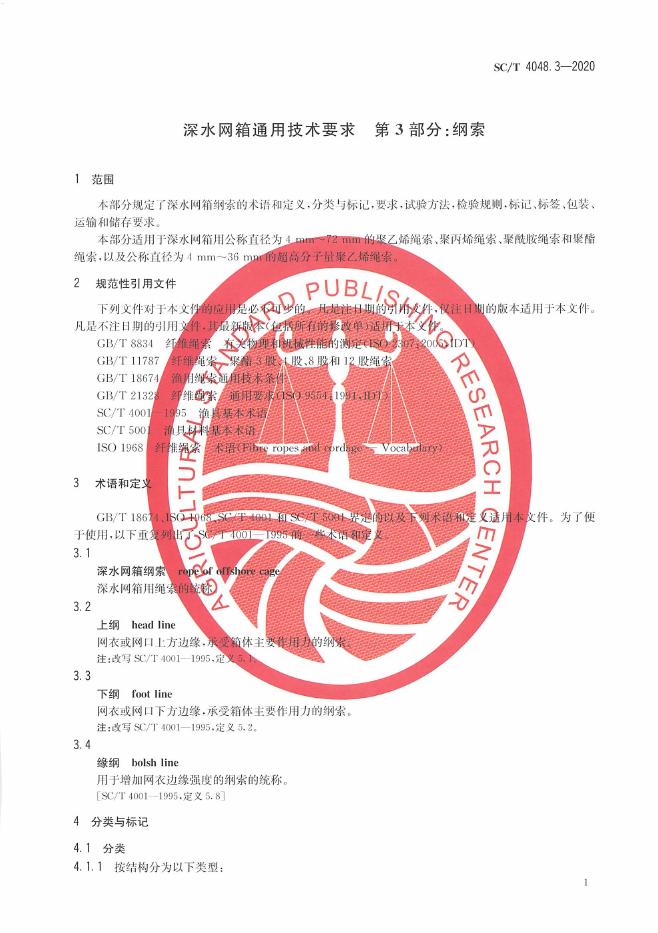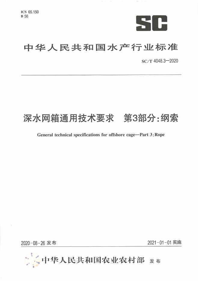SC/T 4048.3-2020 深水网箱通用技术要求第3部分:纲索