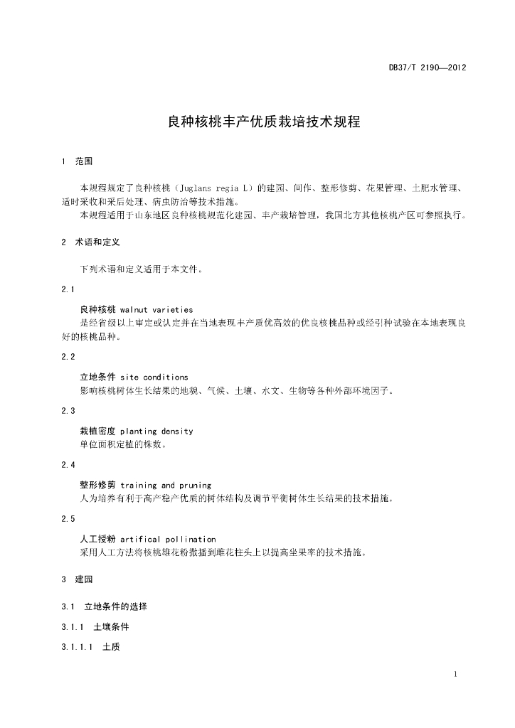 DB37/T 2190-2012 良种核桃丰产优质栽培技术规程