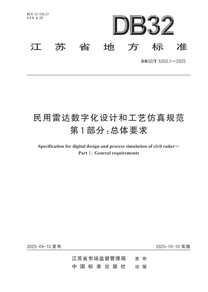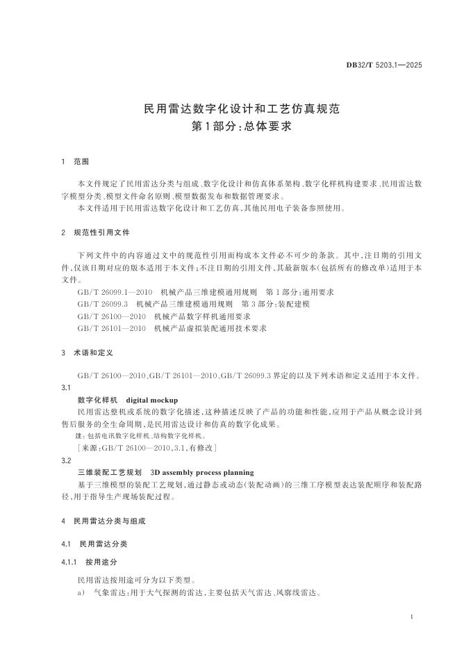 DB32/T 5203.1-2025 民用雷达数字化设计和工艺仿真规范 第1部分:总体要求