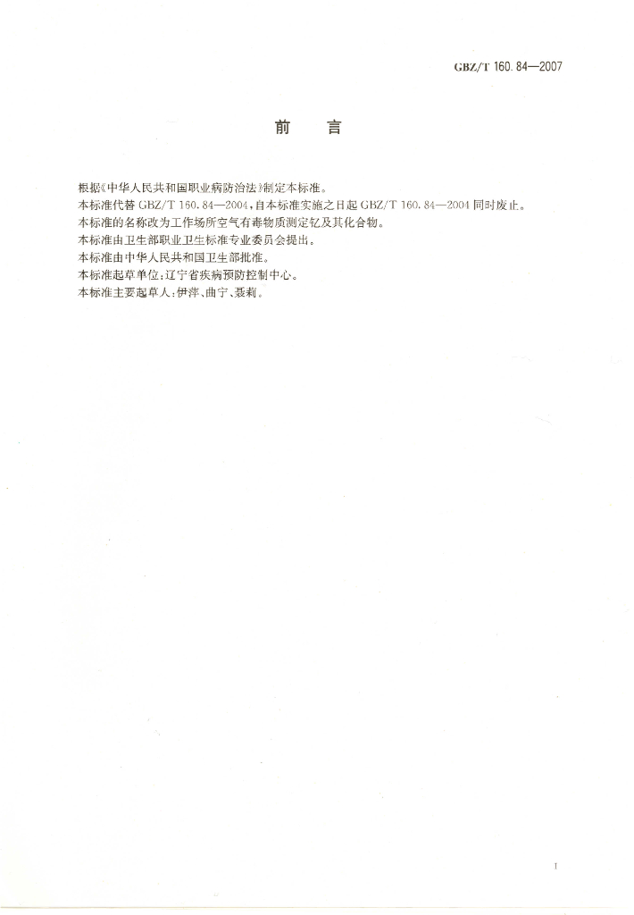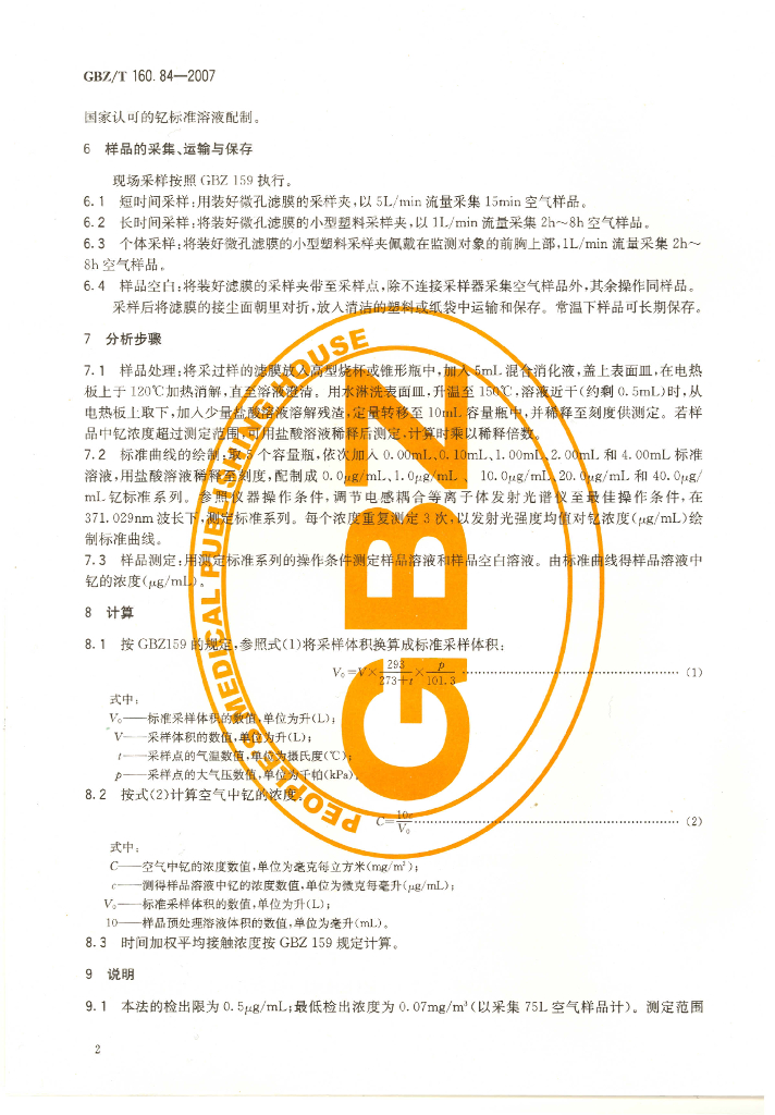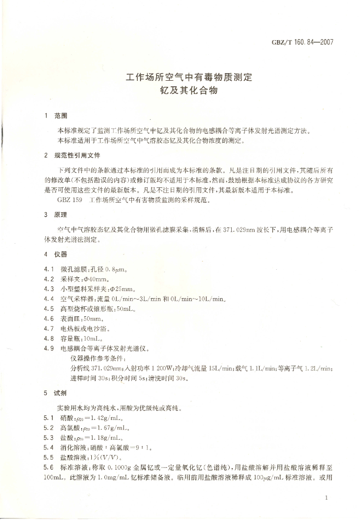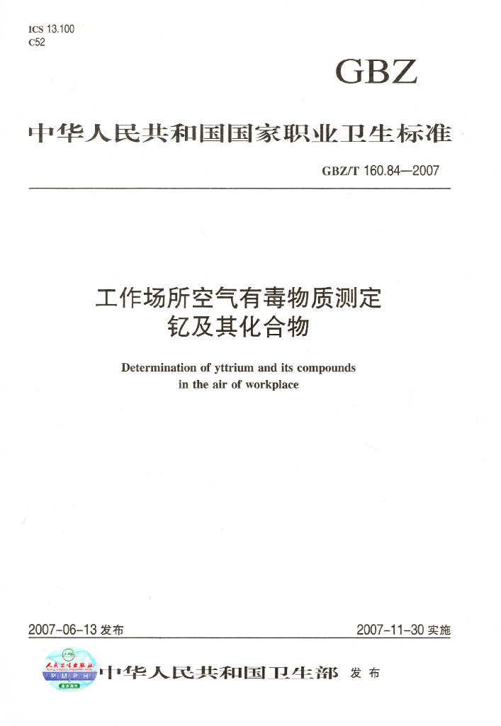 GBZ/T 160.84-2007 工作场所空气有毒物质测定 钇及其化合物