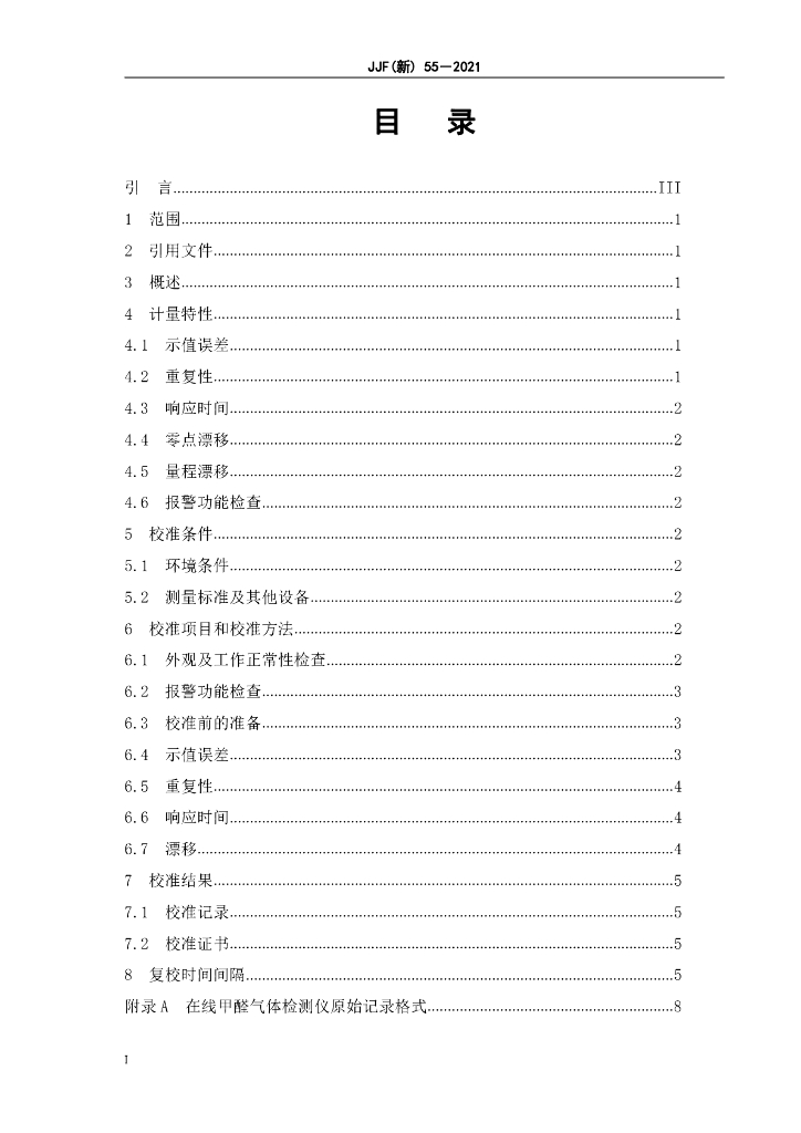 JJF(新)55-2021 在线甲醛气体检测仪校准规范