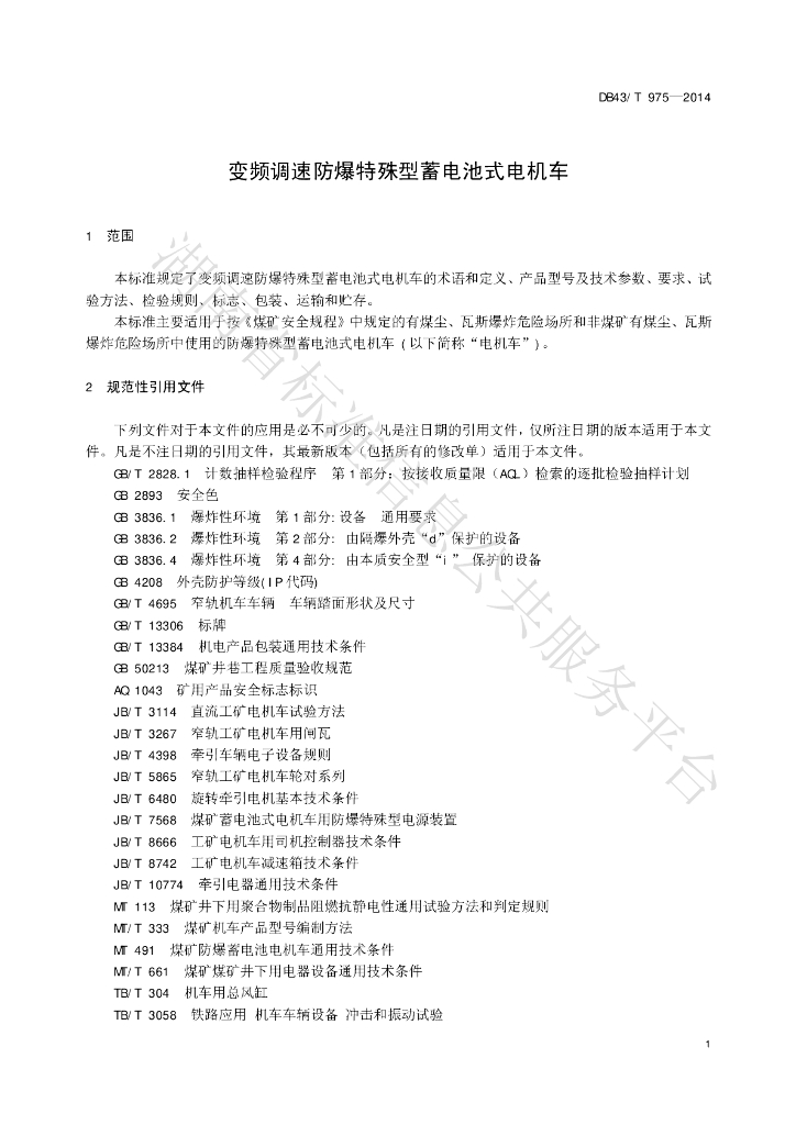 DB43/T 975-2014 变频调速防爆特殊型蓄电池式电机车